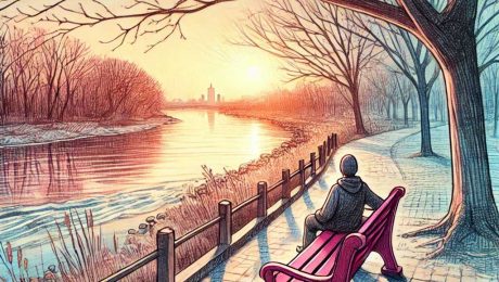 Beyond the point where the river bends south, there sits a pink park bench—a quiet sentinel overlooking the ever-changing landscape. If you find yourself seated there at sunrise, you’ll witness the river and sky transform with the seasons, each one painting a unique picture across the water. In spring, the sun rises into a brilliant