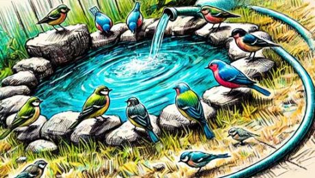 As I stood in the heat of the afternoon sun, I watched the green garden hose spill its life-giving water into the rock garden. The steady flow had transformed the dry, cracked earth into a vibrant oasis, creating a small pond that shimmered like a jewel amidst the parched landscape. The air was filled with