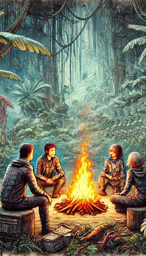 As they sat around the crackling flames, their conversation turned to what lay ahead. "We must be the first to ever make it this far," Zera remarked, her voice a mixture of awe and exhaustion. "No one’s ever spoken of the portal shacks… it's like we unlocked something that wasn’t meant to be found."